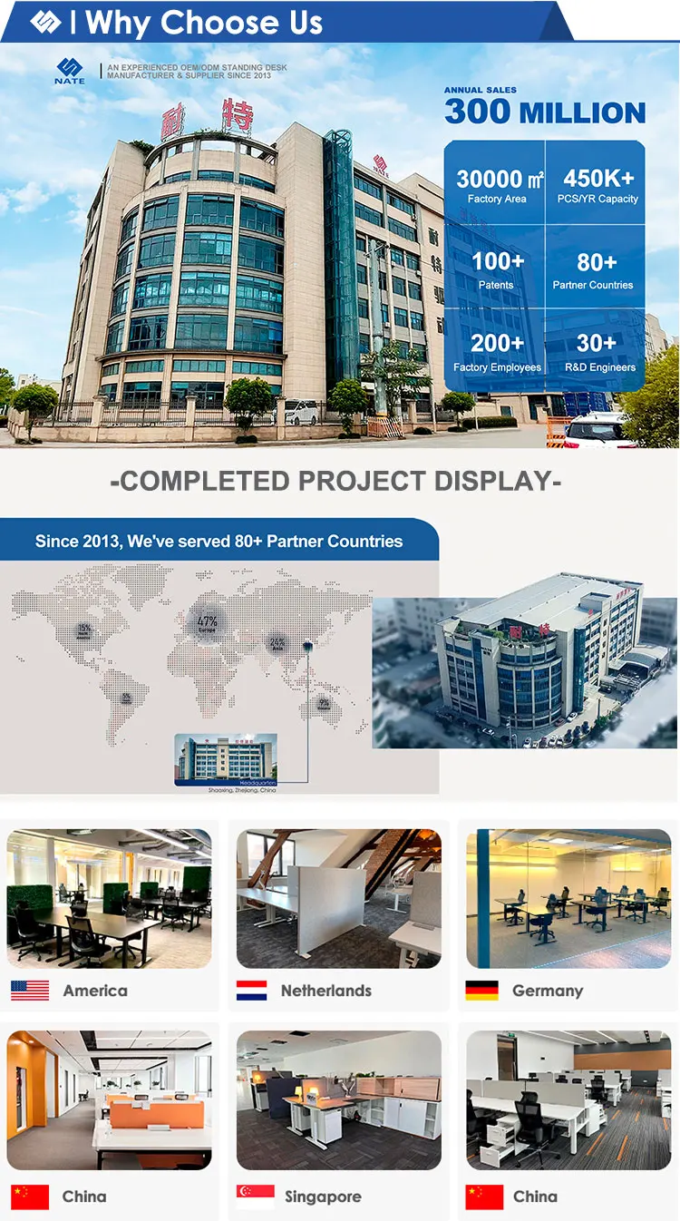 Your project is our priority. We provide ergonomic standing desks that boost productivity and mood. With 10+ years of experience, we deliver top-notch solutions for businesses of all sizes. We offer one-stop services, ensuring high-quality office projects. Let us help you create a healthy and efficient workspace. Start your free design today.